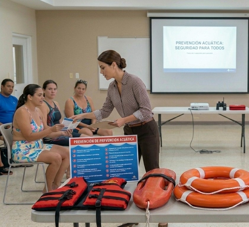 Formación en prevención, rescate acuático, primeros auxilios, RCP y manejo de emergencias.